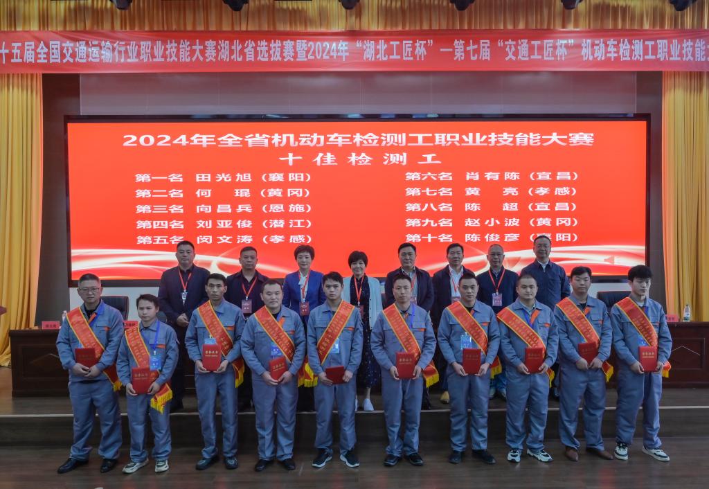 本次大赛由湖北省交通运输厅、湖北省人力资源和社会保障厅、湖北省总工会、共青团湖北省委主办,湖北省道路运输事业发展中心承办,我校协办。大赛分为理论知识竞赛和技能操作竞赛两部分,技能操作涵盖机动车技术状况检测结果分析与处理、机动车特征检查与性能检测两个项目,系统考察了当前维修检测一线技术骨干的综合能力素质,展现了我省维修检测工扎实的专业知识和较强的实践能力。来自全省各市州共16支参赛队伍32名选手参加了此次比赛。经过激烈角逐,10名参赛选手脱颖而出,获评“十佳检测工”,3支代表队获得大赛团体一二三等奖,3家单位荣获大赛组织奖,我校被授予“特别贡献奖”。