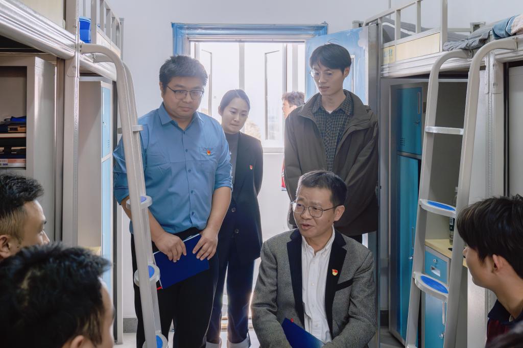 走访寝室环节,李建明与同学们进行了面对面的座谈交流。在座谈中,同学们围绕学校管理、教育教学、服务保障以及个人发展等方面畅所欲言,提出了许多宝贵的意见和建议。李建明耐心倾听、详细记录,并针对同学们提出的问题和困惑进行了逐一解答和指导。