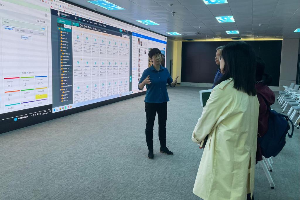 座谈会结束后,谢彤带领马克思主义学院教师前往图书馆信息中心大数据管理机房,现场了解学校智慧教学督导平台的实时运行情况。