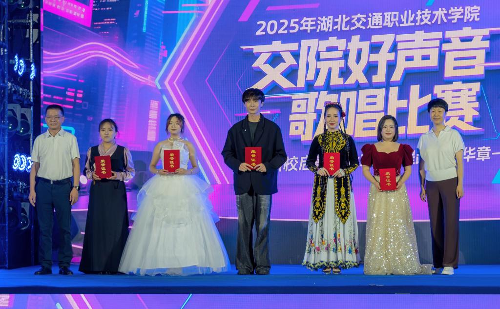 经过激烈角逐,专家评委从演唱技巧、情感表达、舞台表现等多个维度进行了综合打分,最终评选出三等奖11名、二等奖5名、一等奖2名。来自建筑与艺术设计学院工会的刘少朋以一首燃爆全场的《悟空》,来自汽车与航空学院的学子王秋翔凭借其纯净又极具穿透力的嗓音演绎出的《江南》,分别荣获教师组、学生组一等奖,党委书记邵爱军、校长王孝斌等在家校领导共同为获奖选手颁奖。