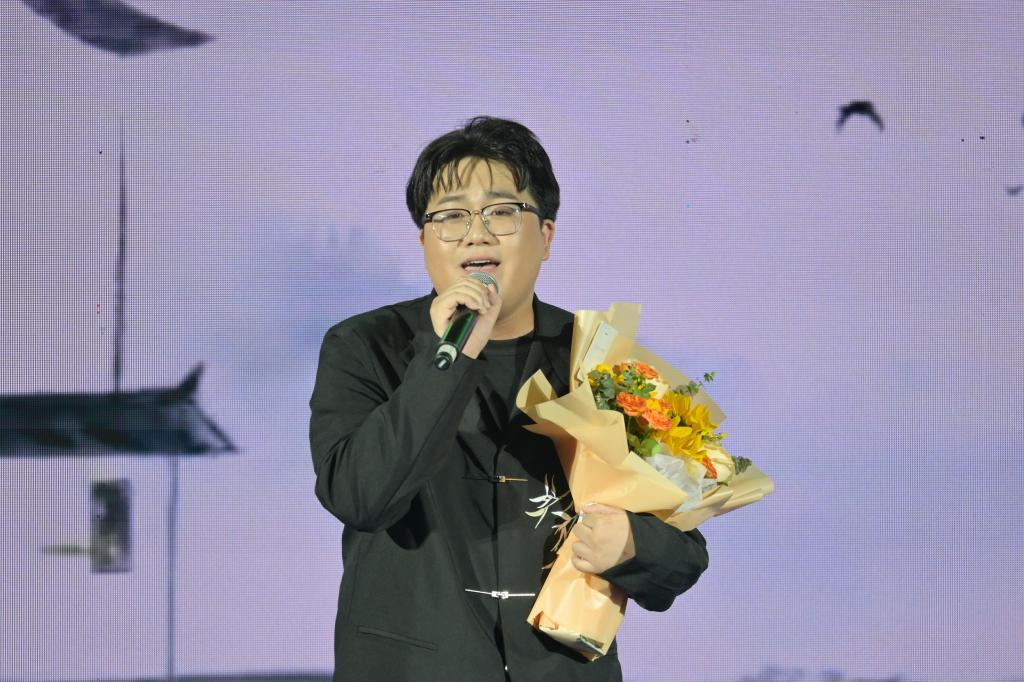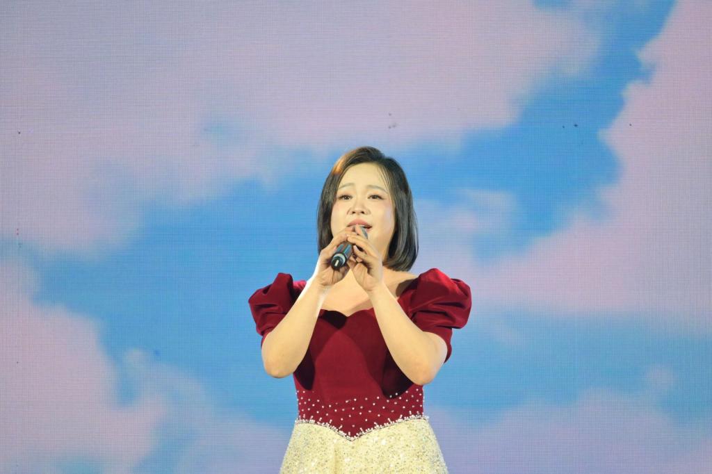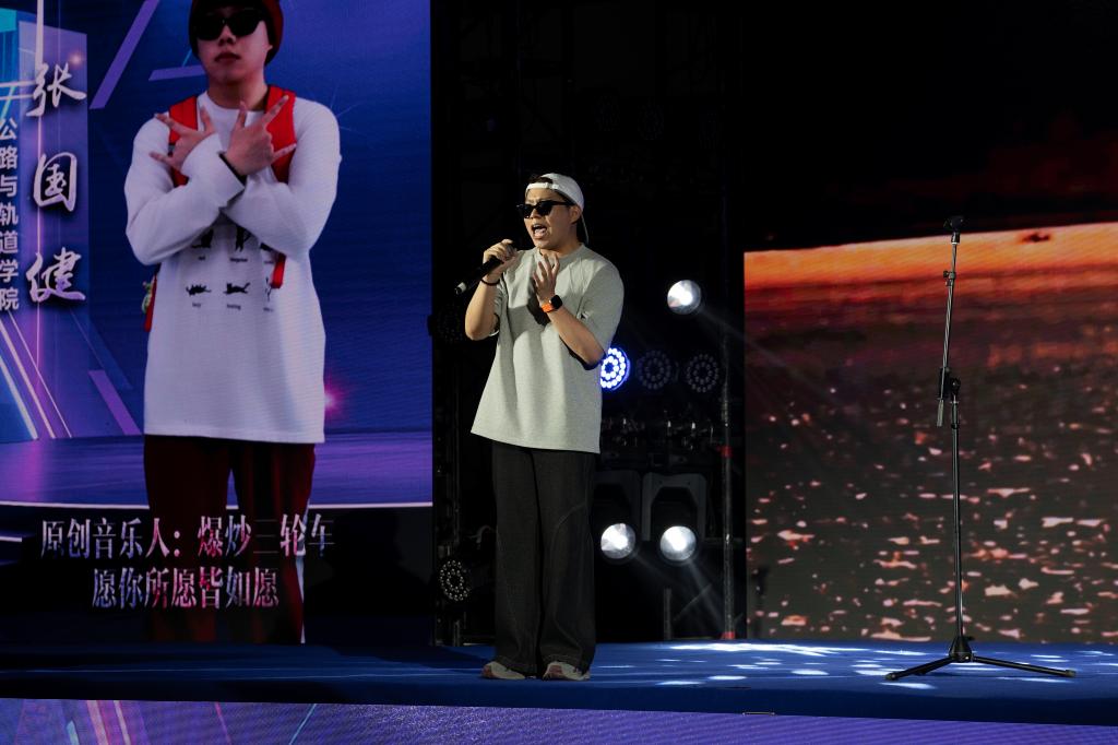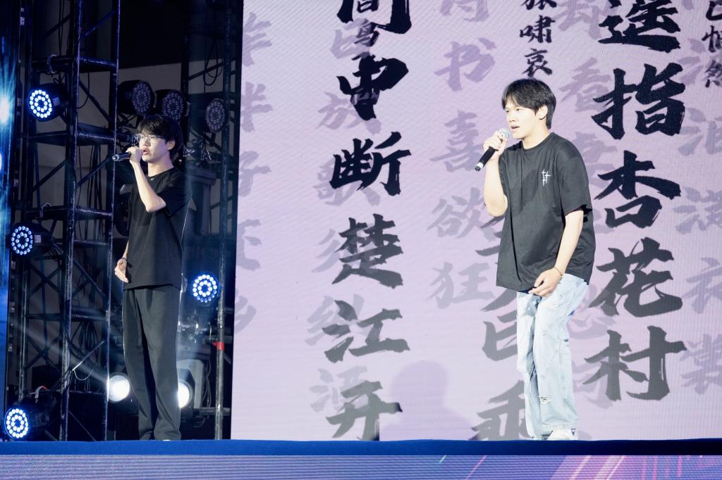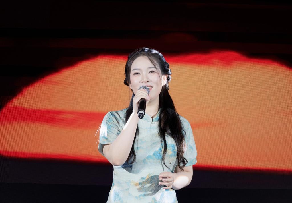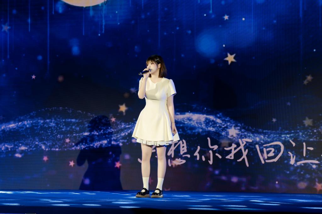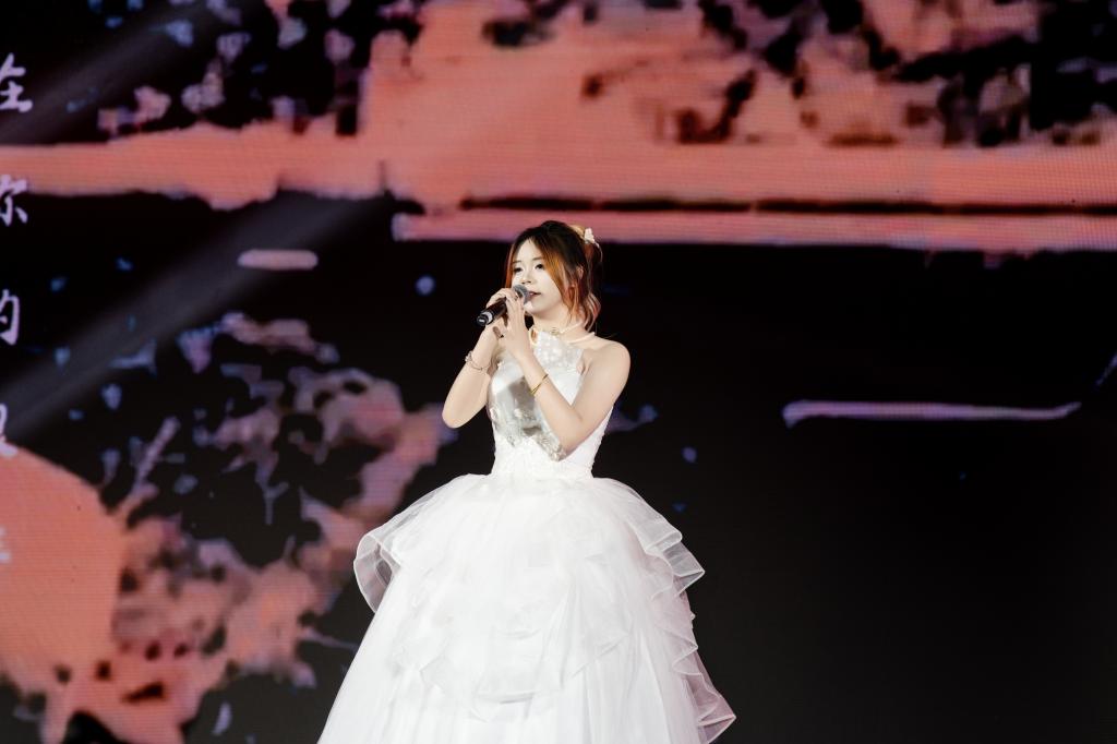 学生组率先展示,一曲大气磅礴的《天下》瞬间点燃全场,仿佛千军万马呼啸而来;《小手拉大手》洋溢着甜蜜纯真的气息,带大家重温美好童年;《如愿》以纯净空灵的嗓音讲述了火热的家国情怀;《爱的飞行日记》以青春视角谱写浪漫恋曲,宛如一首流动的爱情诗篇;《陷阱》深情婉转,将情感的纠葛与无奈演绎得淋漓尽致;《慢慢》温柔绵长,触动心底最柔软的角落;《你在终点等我》坚定有力,传递出对爱情的执着;《江南》深情嗓音演绎凄美爱情,让听众仿佛置身歌中;《青藏高原》高亢嘹亮,唱出雪域高原的辽阔壮美;而我校学生自创的歌曲《破圈》大胆创新,彰显了独特的艺术魅力,赢得了观众的认可。