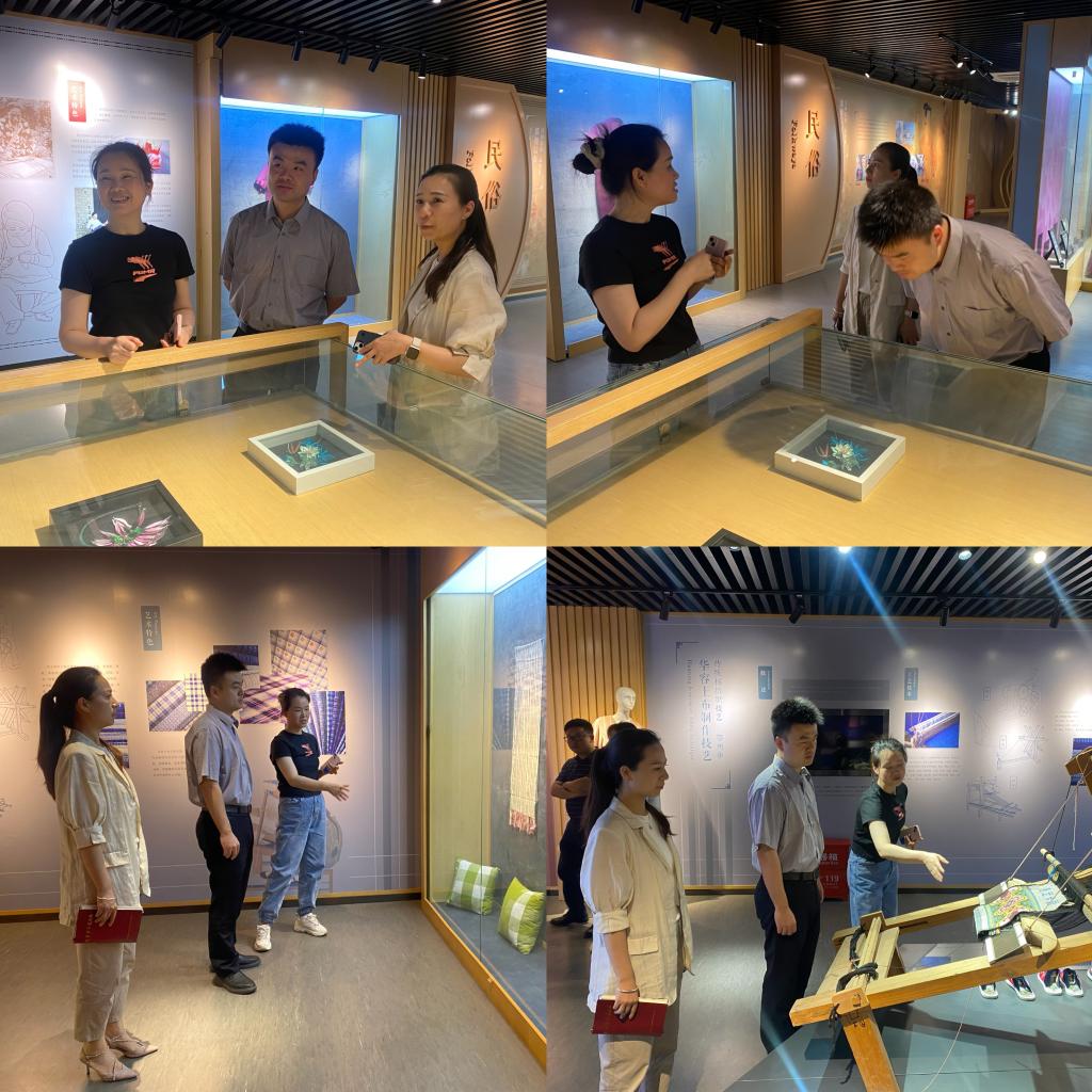 调研团队走进荆楚纺织非遗馆、传承工作坊及教学实践基地,详细听取了中心在非遗项目挖掘、活态传承、文创开发等方面的经验介绍。实地感受楚绣、西兰卡普等国家级非遗项目的技艺魅力。