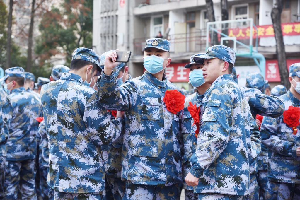 截至1月5日凌晨4点,我校顺利完成443名2018级定向培养士官生入伍工作,其中海军士官生191名,空军士官生165名,武警士官生87名。经过在校2.5学年的专业技能学习和准军事化培养锻炼,士官生们已初具军人风采,他们身着迷彩服,佩戴大红花,带着学校领导老师们的祝福和嘱托,启程奔赴各地军营,开启军旅生涯新篇章。