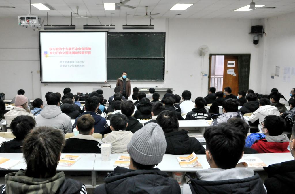 12月9日上午,在主教学楼A0213教室,校长陈方晔教授走进思政课课堂,宣讲十九届五中全会精神,与我校学子共同展望交通现代化的美好蓝图。