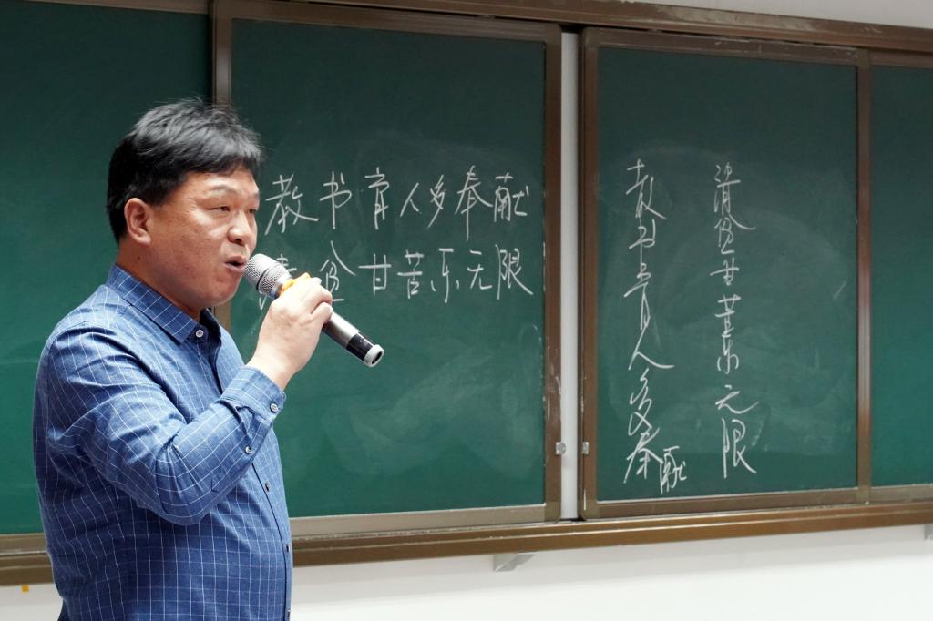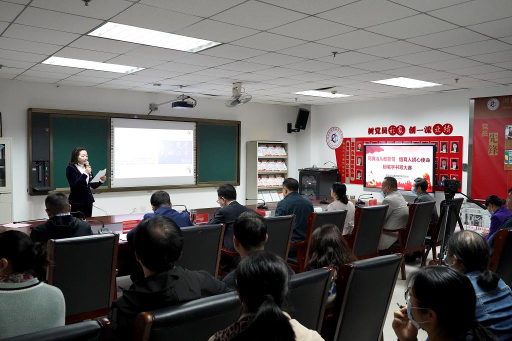 三尺讲台育桃李,一支粉笔写初心。10月28日,我校物流与交通管理学院党总支在党员活动室举办了“写廉洁从教警句 悟育人初心使命”粉笔字书写大赛决赛。校党委副书记、副校长李全、校纪委书记齐建模,党委组织部、党委宣传部、监察室、教务处、学工处等有关部门负责人、物交院全体党员教师参加活动。