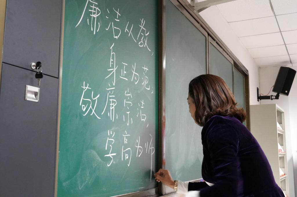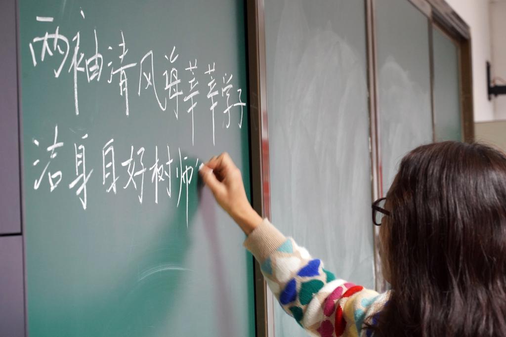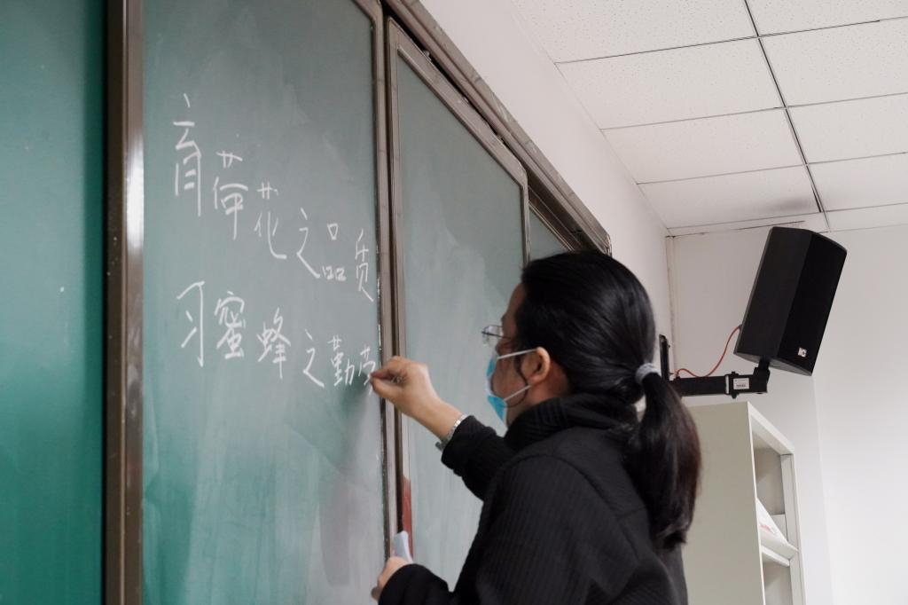 据了解,物交院举办此次活动旨在进一步创新党员教育形式,将党建与业务融合,用党风引领教风,促进党性教育与教师教学基本功的双提升,充分发挥支部的示范引领作用,通过总支支委带头,支部支委响应,学院全体党员教师积极参与,让每名党员教师在写中思、写中悟,也让非党员教师在党员教师榜样的感召下也纷纷向党组织靠拢,提交了精美板书作品和廉洁从教感悟。部分教师为提交高质量书写作品,不仅上课期间坚持板书,而且买了小黑板在家反复练习,甚至用直尺在黑板上打好方格,以提高写作水平。(摄影/涂一民 兰田)