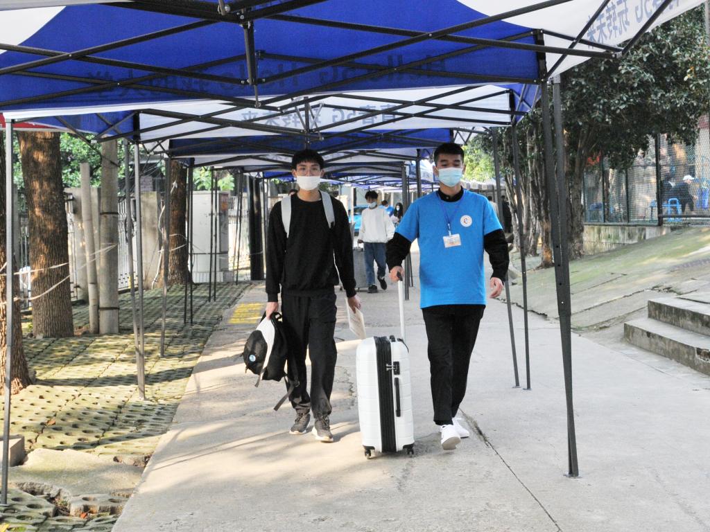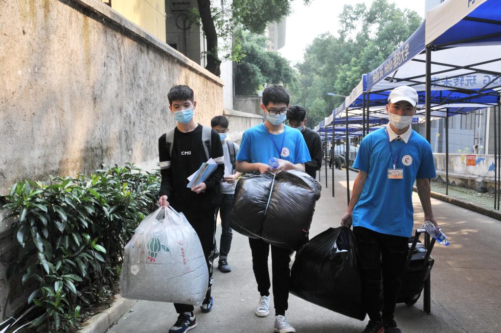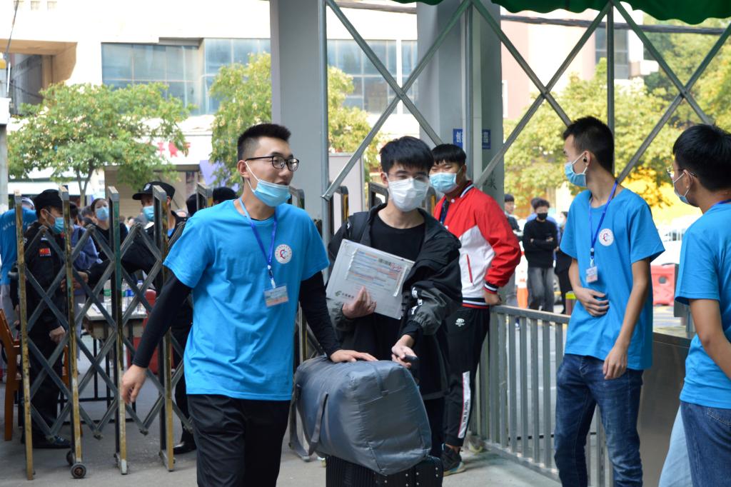 物流与交通学院2020级新生朱同学,来自江西瑞金,今天早上五点,他父母便从家长出发开车送他来学校报到,了解到学校的防疫举措后,父母叮嘱他“好好学习,听老师的话”后,便放心将他交给志愿者。随后,志愿者带领他完成入学报到手续。“从入学一直到宿舍,志愿者一直跟着我,不仅帮我搬运行李,还不时地给我介绍学校,并能及时回答我的问题,让我感觉特别亲切。”朱同学告诉记者。