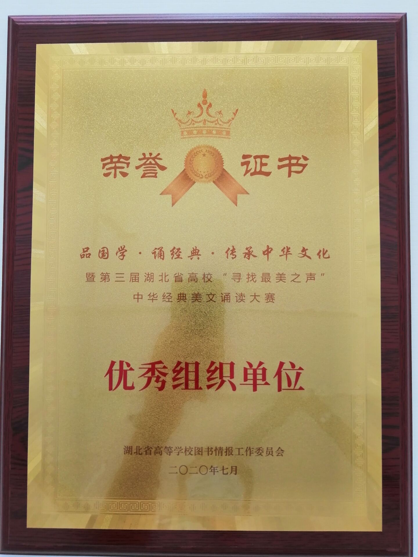 近日,第三届湖北省高校“寻找最美之声”中华经典美文诵读大赛落下帷幕,我校教师卞妮获特别参与奖,童兆莉获优秀指导老师奖,我校荣获优秀组织奖。