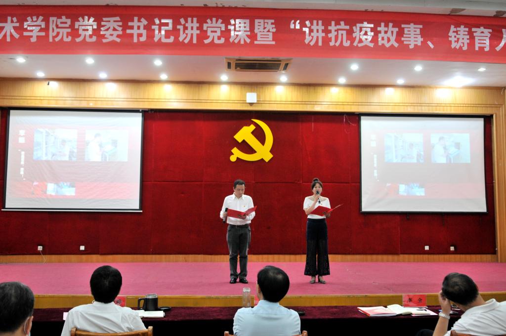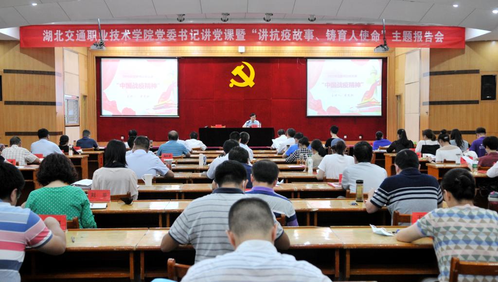 讲好抗疫故事,弘扬中国精神。7月21日,学校在五楼学术报告厅举行党委书记讲党课暨“讲抗疫故事、铸育人使命”主题报告会。党委书记以“中国战疫精神”为主题讲述了一堂主题鲜明、重点突出、指导性强的精彩党课;12个党总支、直属党支部推选的党员代表讲述了身边朴实、生动、感人的抗疫故事。全体校领导,各党总支、直属党支部书记、副书记、部分委员及各部门负责人参加报告会。报告会由党委副书记、副校长李全主持。