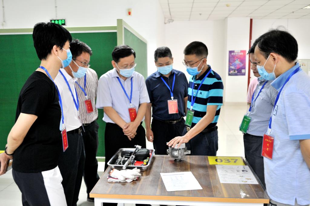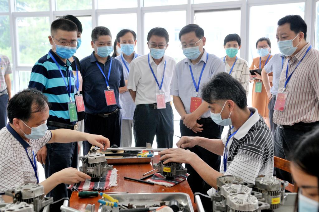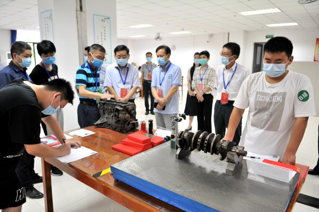 孔祥恩一行深入专业知识机试、技能操作等多个考场实地查看了考试工作情况。在机械零部件测量、同步器检测与安装、发电机拆装与检查考试现场,孔祥恩还饶有兴致地观看了考生的具体操作情况,检查了考生信息,了解了考试流程,并对考生组织、考官培训、考试设备、信息安全等方面问题进行了问询和指导,称赞我校技能高考工作分工明确、组织得力。