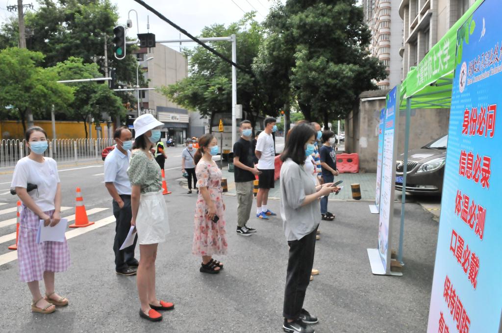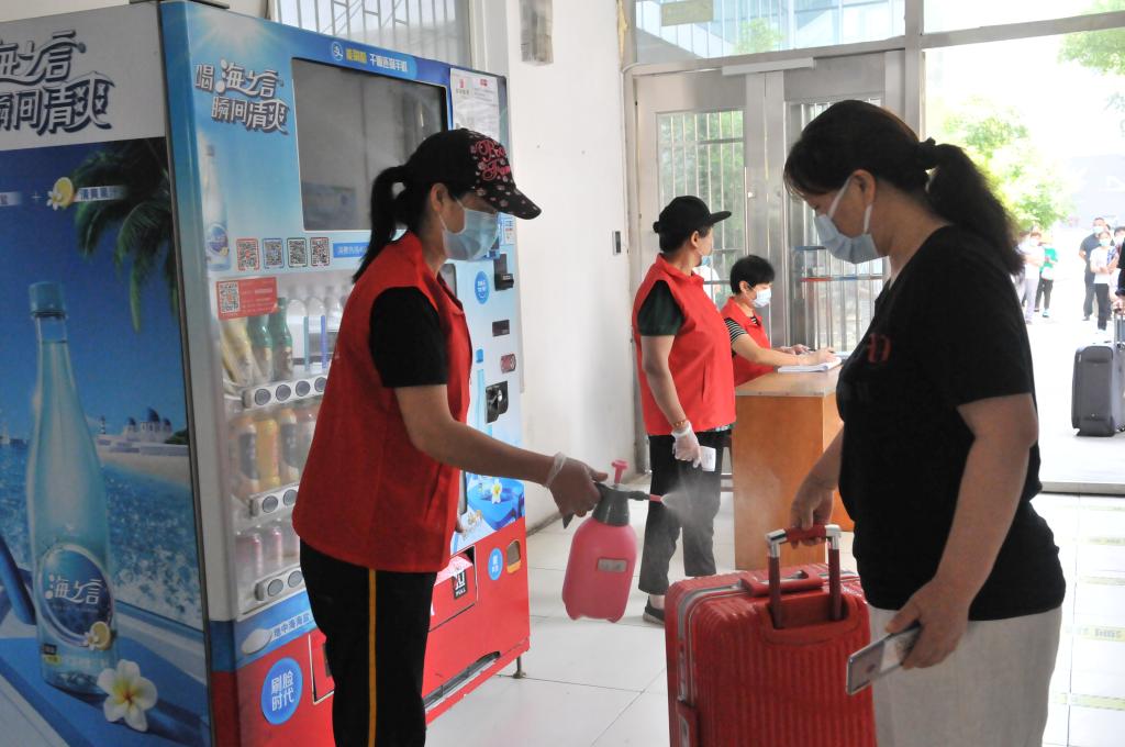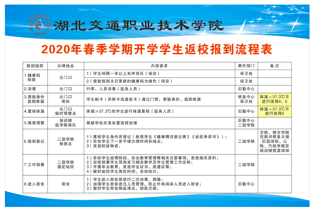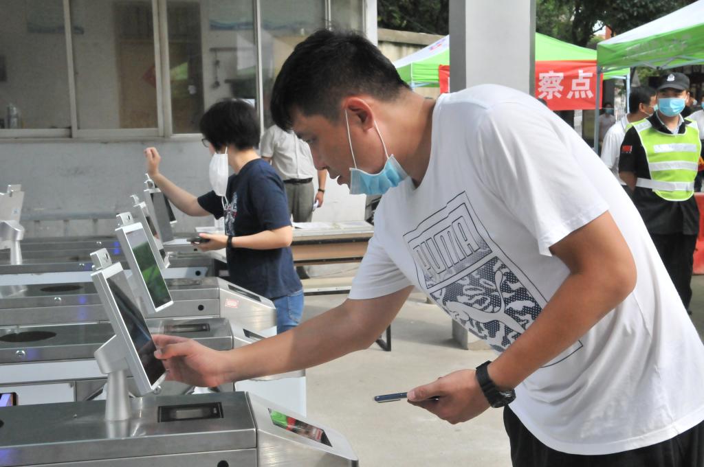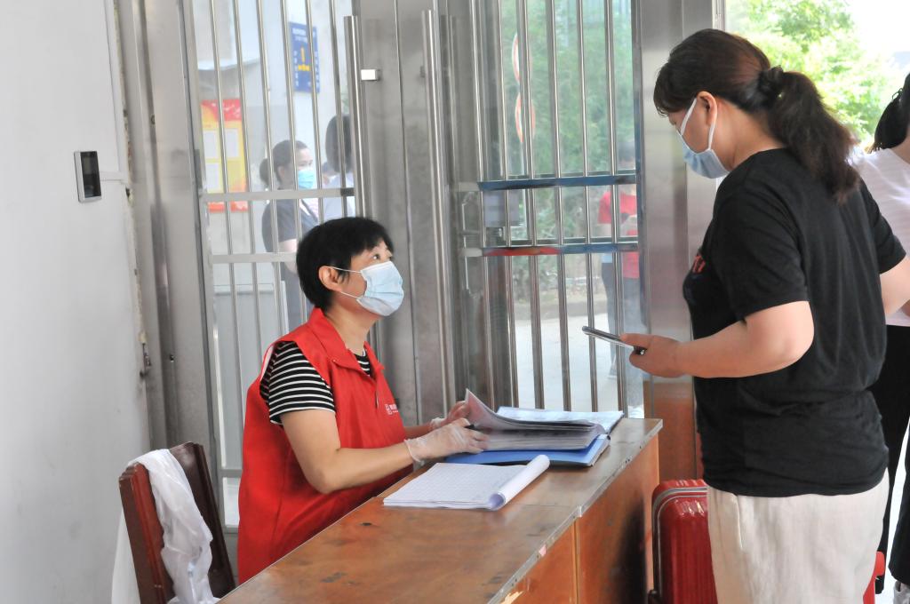 入校检查无异常的同学则跟随志愿者来到其学院的报到点,再次复核身份并登记、并领取防疫物资。在做好信息记录后,学生回到所住宿舍楼。在宿舍楼门口,宿管员要对学生信息进行再次核对、检测体温、消毒行李,之后方可进入到宿舍。
