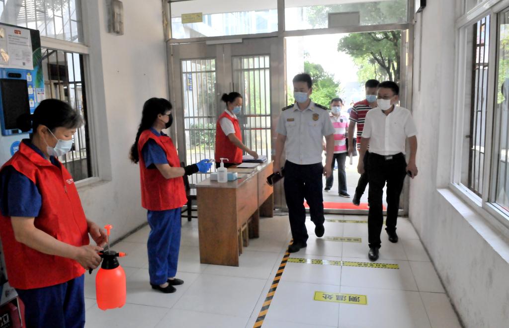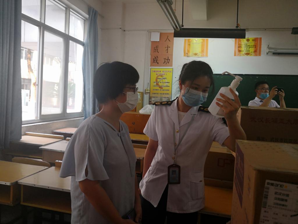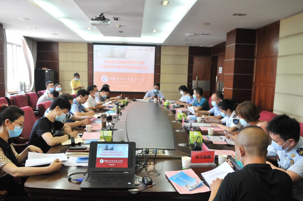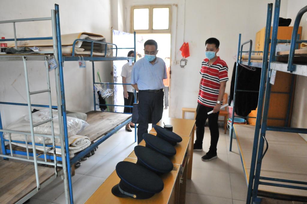 6月15日,洪山区高校开学工作组副组长、区大学之城办公室主任李海涛率区卫生局、区市场监督管理局、区应急管理局、洪山公安分局、洪山消防大队、区疾控中心、卓刀泉街道等部门相关负责人莅临我校评估验收学校开学准备工作,对我校各项准备工作给予了充分肯定,并提出了具体指导意见。(摄影/童洪川 张骊 夏丽平)