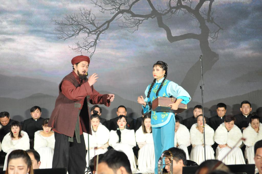“八月桂花遍地开,鲜红的旗帜竖啊竖起来……”演出在交响乐团的齐奏声中正式拉开了序幕。《八月桂花遍地开》讲述的是第一次土地革命时期,富甲一方的唐母在弥留之际,将家中巨产托付给养女桂花,并指配桂花嫁为唐家长媳。 身为共产党人的次子唐剑啸与身为国民党军官的长子唐剑豪回乡后,围绕着桂花的婚姻,以及开仓放粮、分田分地等事件发生激烈冲突,兄弟反目。一连串的家庭剧变之后,唐家为奴多年的哑叔揭开了桂花的隐秘身世。如梦初醒的桂花烧毁唐母托付的田约地契,接过唐剑啸留下的苏维埃牌匾,坚定地投身革命浪潮,与千千万万大别山儿女一起,共同开创“八月桂花遍地开,鲜红旗帜竖起来”的新世界 。