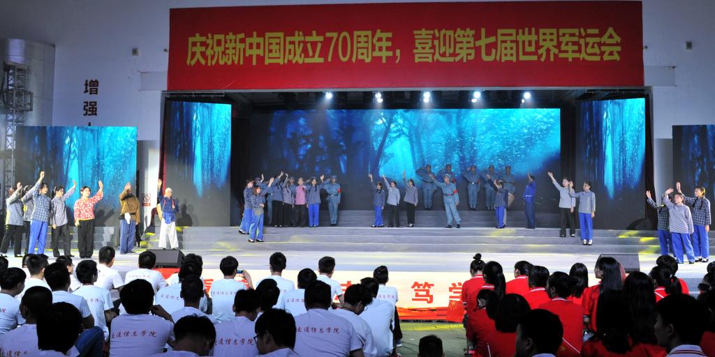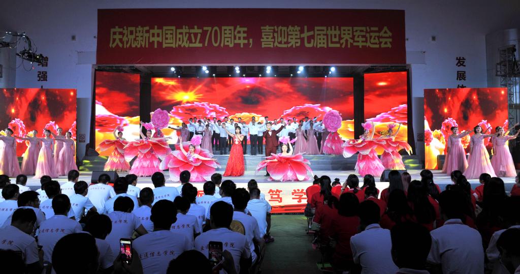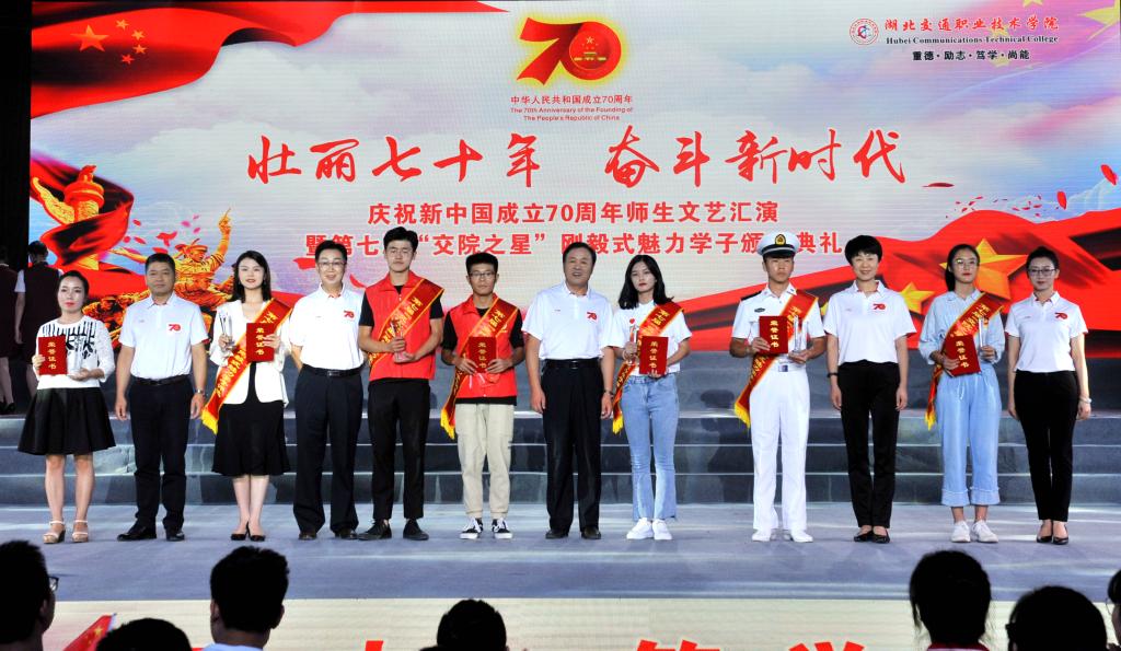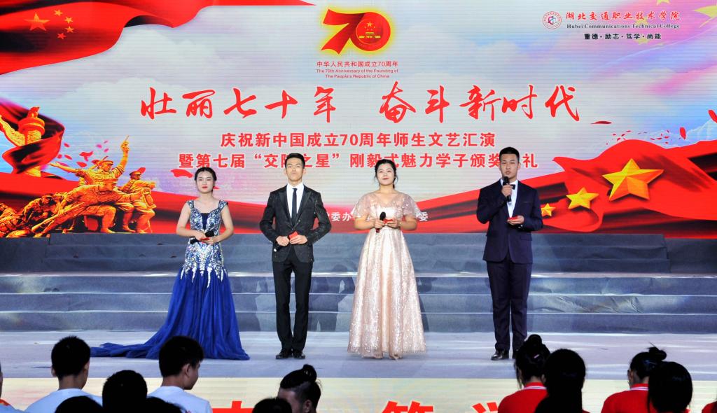 9月29日晚,学校在体育馆隆重举行了庆祝新中国成立70周年师生文艺汇演暨第七届“交院之星”刚毅式魅力学子颁奖典礼,全体在家校领导,各职能部门、二级学院负责人,老师、学生代表等近千名师生员工欢聚一堂,共庆祖国七十华诞。