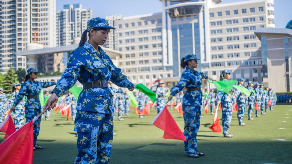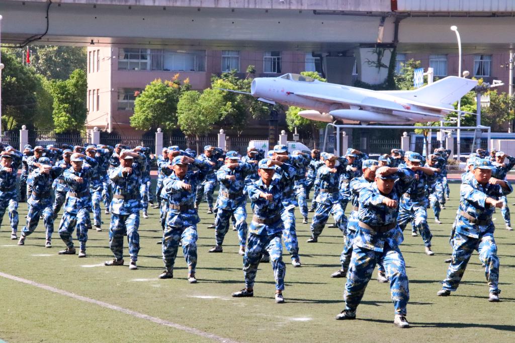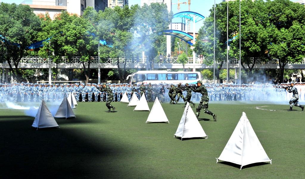 在庄严的国歌声中五星红旗冉冉升起,闭营式正式开始。迎校旗仪式之后分列式开始,各方阵依次经过主席台,全体参训学员口号嘹亮、步伐整齐,赢得了主席台上各位首长和领导的阵阵掌声。由武警、海军、空军士官班组成的四个连队让人眼前一亮,他们身着统一制服,精神饱满、气宇昂轩地走过主席台,将阅兵推向高潮。军训成果汇演内容丰富:战术表演生动逼真、让人身临其境;旗语表演整齐划一、凸显专业内涵;匕首操表演分解连贯、动作到位;军体拳表演气势磅礴、引人入胜;革命歌曲合唱声音嘹亮、振奋人心。
