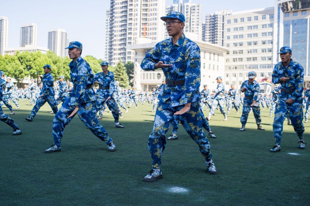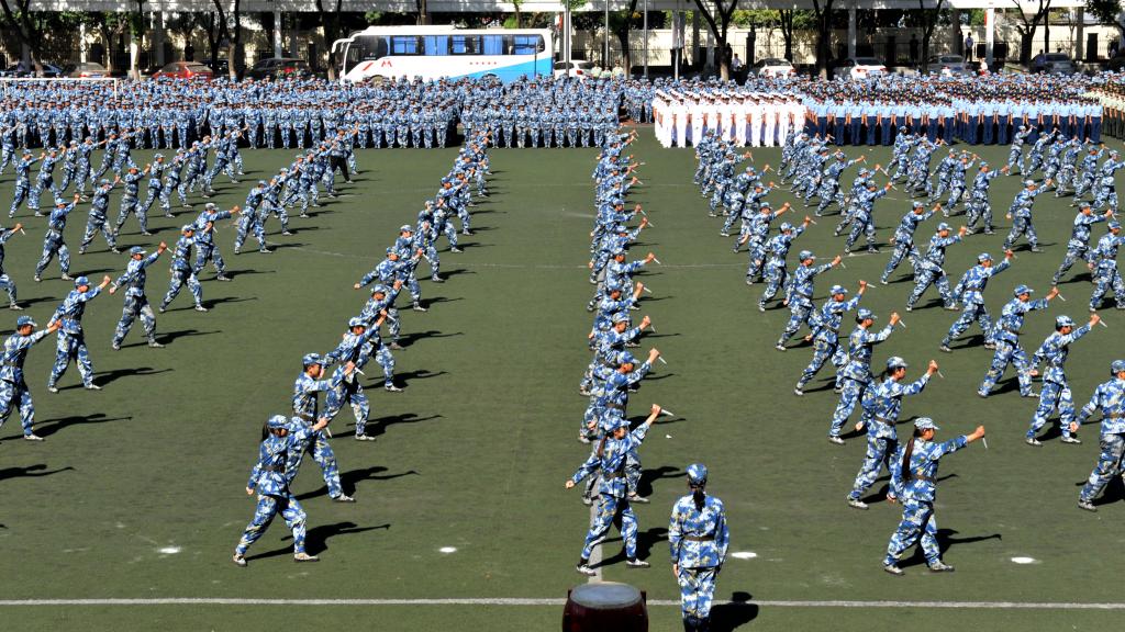 闭营式后,在家校领导与承训部队首长和教官在学校大楼前合影留念。(摄影/张骊 杨海 夏斯敏 龚浩然 朱伊凡 陈星明)