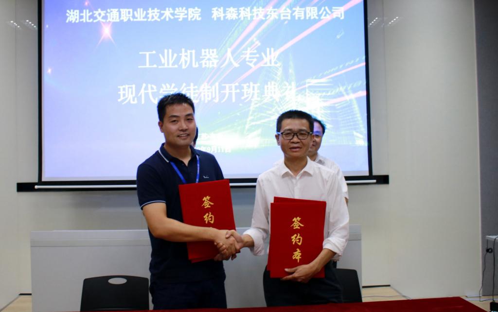 李全为科森科技东台有限公司产教融合基地授牌。汽车与航空学院院长李建明、科森科技东台有限公司人力资源部经理仲建代表校企双方签署现代学徒制合作协议和“科森班”人才订单培养协议。