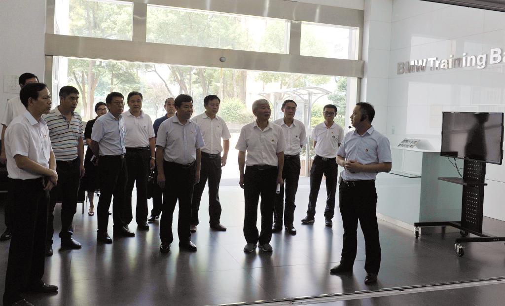 在汽车与航空学院,丁贵桥一行参观了汽航学院文化走廊,听取了汽车与航空学院专业建设和发展情况汇报,丁贵桥对汽航学院理实一体化的教学模式予以充分肯定。在宝马实训基地,丁贵桥听取了基地运营情况汇报,详细了解了学校深化校企合作、推进产教融合的有关做法,并饶有兴趣地查看宝马班学生的学习材料和实习实训设备,鼓励学校引入更多优质资源,继续深化产教融合,坚持市场需求导向,培养更多技术技能领军人才。(摄影/张骊)