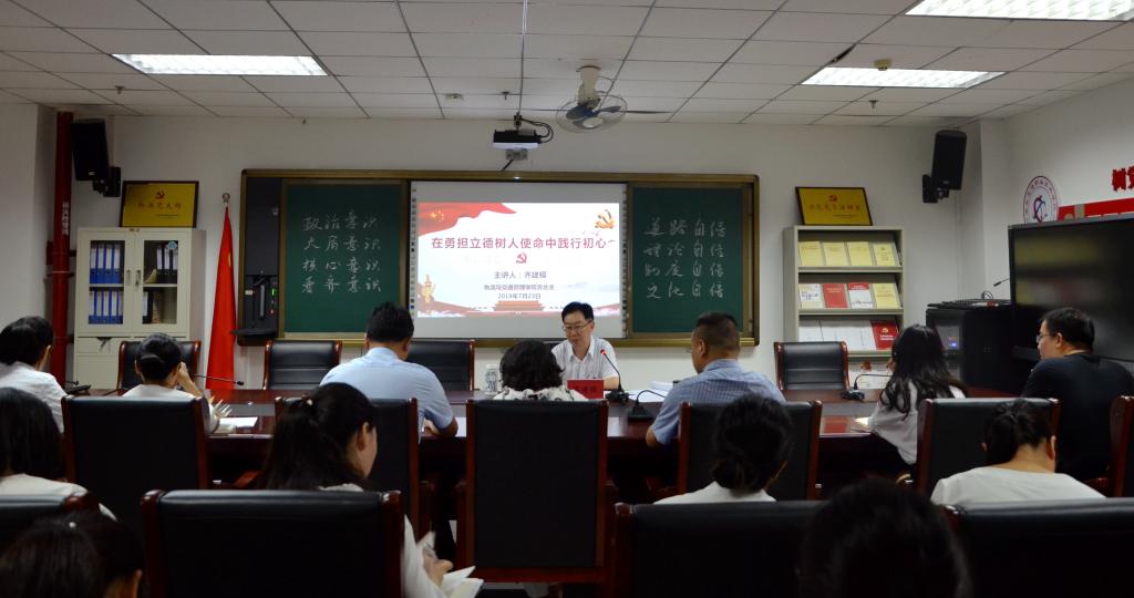为深入贯彻落实“不忘初心 牢记使命”主题教育活动,7月23日上午,在物流与交通管理学院党员活动室,校党委纪委书记齐建模同志以“在勇担立德树人使命中践行初心”为题,为物交院和监察室全体党员教师上了一堂如何在生动实践中筑牢初心、守护初心、践行初心,担起立德树人使命的精彩党课。