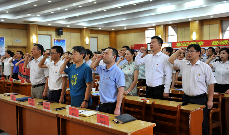 大会在庄严的《国歌》声中拉开帷幕。在党旗下,新党员庄严宣誓,老党员重温入党誓词,共同表达了为共产主义事业奋斗终身的坚定信念和人生追求。校长陈方晔宣读表彰决定,校长办公室党支部等6个红旗党支部、张卫国等10名优秀党务工作者、丁昊等61名优秀共产党员受到表彰。纪委书记齐建模宣读通报,航海学院党总支党员活动室、后勤保卫党支部党员活动室被命名为学校第二批示范党员活动室。会议讲述了“身边好党员”方颖、翟娟、石小平、张行茂、施裕国等5名优秀共产党员的先进事迹。