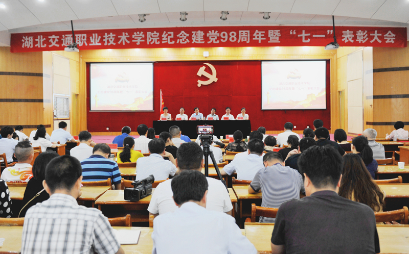 致敬身边榜样,凝聚奋进力量。6月29日,在中国共产党建党98周年到来之际,学校在五楼报告厅隆重举行纪念建党98周年表彰大会。全体在家校领导,卓刀泉校区全体党员,马沧湖、木兰山校区党员代表、离退休党支部优秀党员代表及全体新发展的党员参加会议。会议由党委副书记、副校长李全主持。