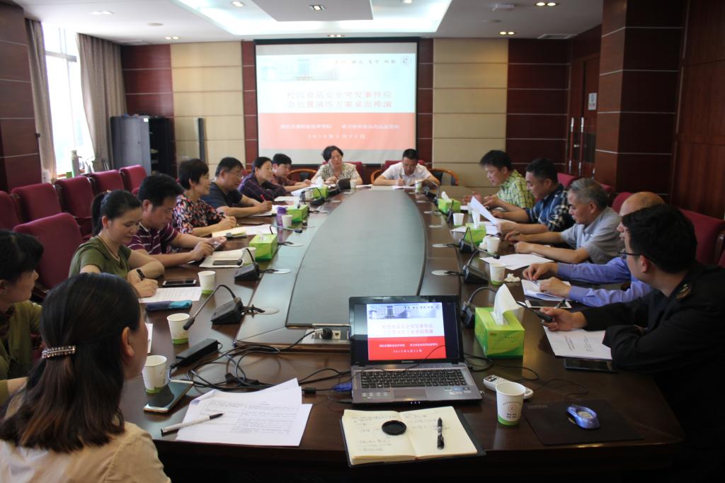 5月22日,我校与卓刀泉街食药监所在学校2号会议室进行校园食物安全突发事件应急演练桌面推演。洪山区市场监督管理局梅玖副局长,卓刀泉街章所长一行,学校相关部门负责人员参加应急推演活动。
