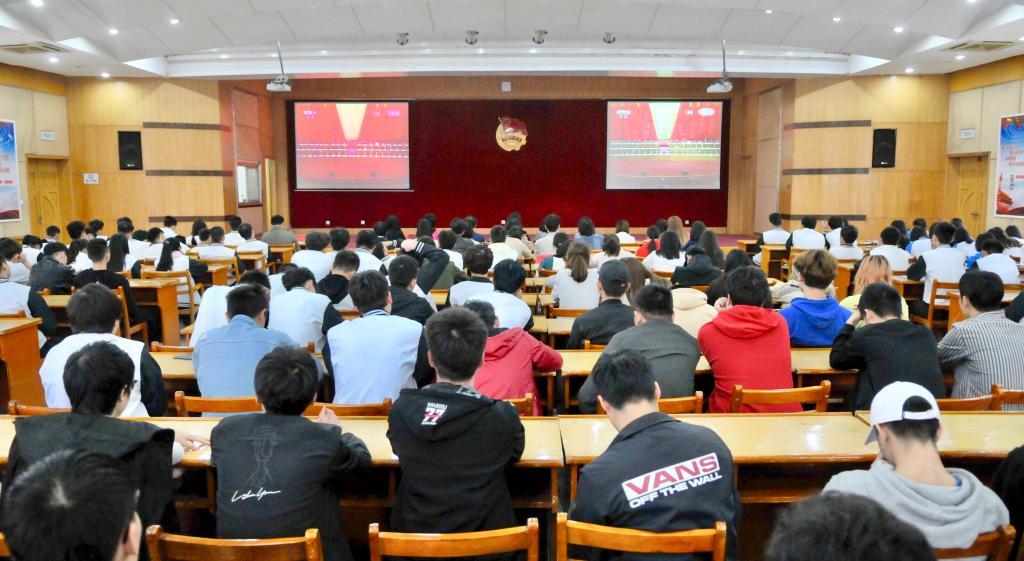 4月30日,纪念五四运动100周年大会在人民大会堂举行,中共中央总书记、国家主席、中央军委主席习近平出席大会并发表重要讲话。上午10时30分,学校副校长谢彤、相关职能部门负责同志,以及数百名青年师生在五楼学术报告厅收看了此次大会直播,各党总支组织青年师生在各分会场同步收看直播。