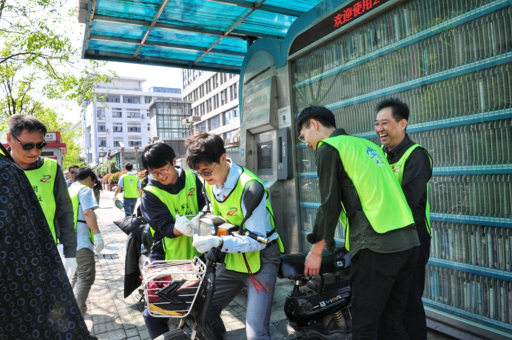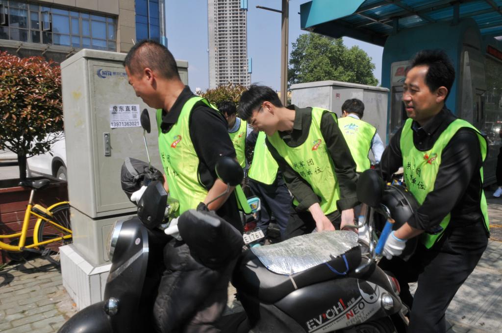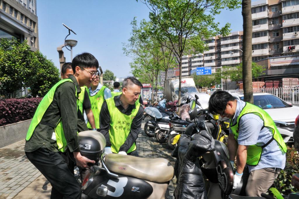 本次活动的主题为“清理电动车棚及非机动车乱停乱放”,党员志愿者们认真地沿路清理停放不规范、占用盲道等问题的共享单车、电动车。道路上,未开锁的共享单车、电动车又重又难搬,大家便齐心协力将车一辆一辆地逐一挪移到停放点,并进行规整,按秩序整齐摆放。