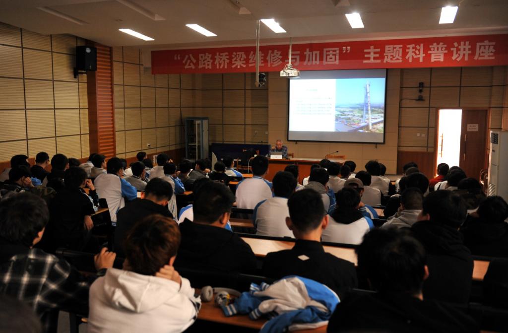 为了丰富2019年yl6809永利官网科学技术协会科普活动,4月11日,我校特邀湖北省交通规划设计院副总工程师、教授级高级工程师宛劲松作《公路桥梁维修与加固》主题科普讲座。公路与轨道学院师生共100多人参加了此次讲座。