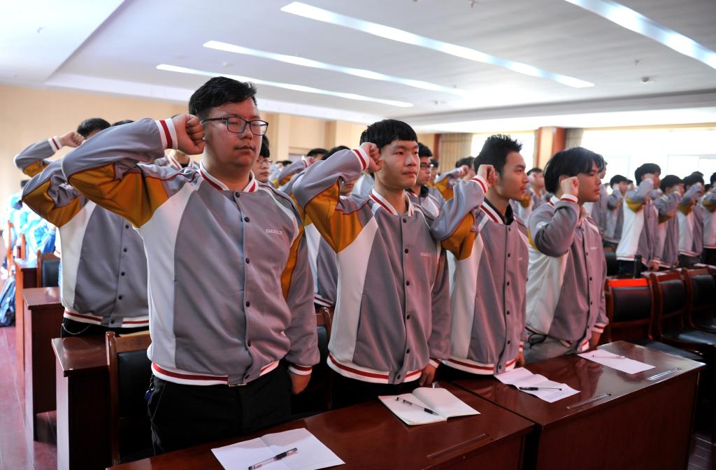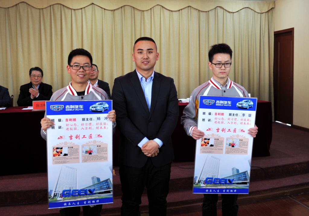开班仪式上,陈方晔与牛泽平代表校企双方签订了《吉利汽车校企合作协议》并为学校人才培养基地授牌;吉利招聘专员吴祥宇为首届吉利汽车“成蝶计划”定向班授牌;定向班84名学员郑重宣誓将严格按照定向班的要求努力学习。牛泽平介绍了吉利汽车的发展历程及规划,校企合作“成蝶计划”定向培养在人才培养模式、培训方案、福利待遇、晋升等情况,并着重介绍了该集团“尊重人、成就人、幸福人”的企业文化。