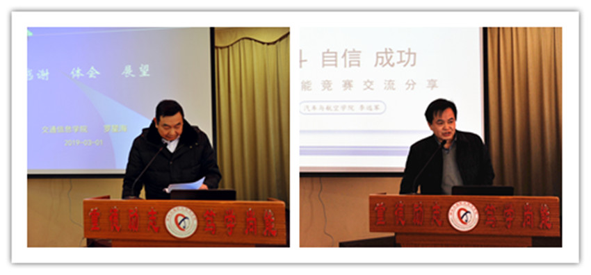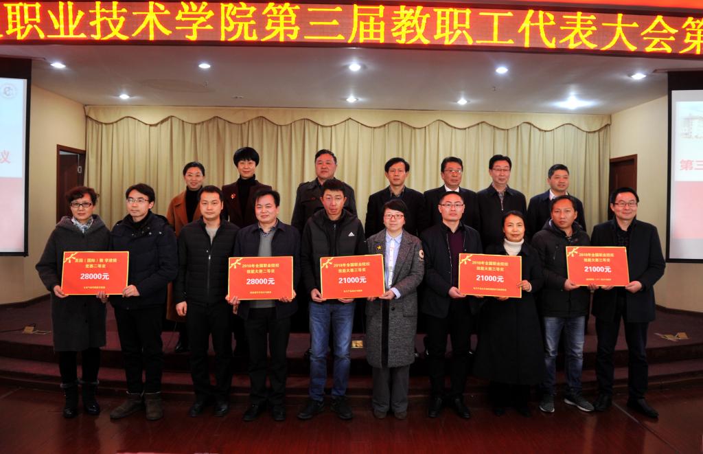会上,厅、校领导为2018年国家级、省级教学成果奖和全国职业院校技能大赛获奖团队颁奖。交通信息学院、汽车与航空学院分别围绕国家级教学成果、学生技能竞赛进行了经验交流发言,分享了成功经验。会议对学校第三届四次教职工代表大会以来的提案办理情况进行了说明,并一致审议通过了校长工作报告。