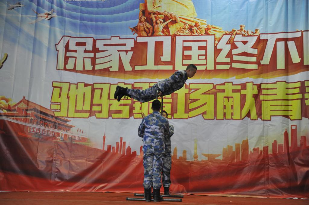 欢送会上,三个年级的士官生共同表演了合唱《国家》、《中国军魂》、《强军战歌》、《当那一天来临》,战术《迎着晨曦出发》,舞台剧《我们的士官生活》,舞蹈《迈向深蓝》等节目,饱含深情和祝福的精彩演出赢得了在场观众的阵阵掌声。2016级士官生踏着整齐的正步,将象征士官营精神的旗帜庄严转交到2017级士官生手中。