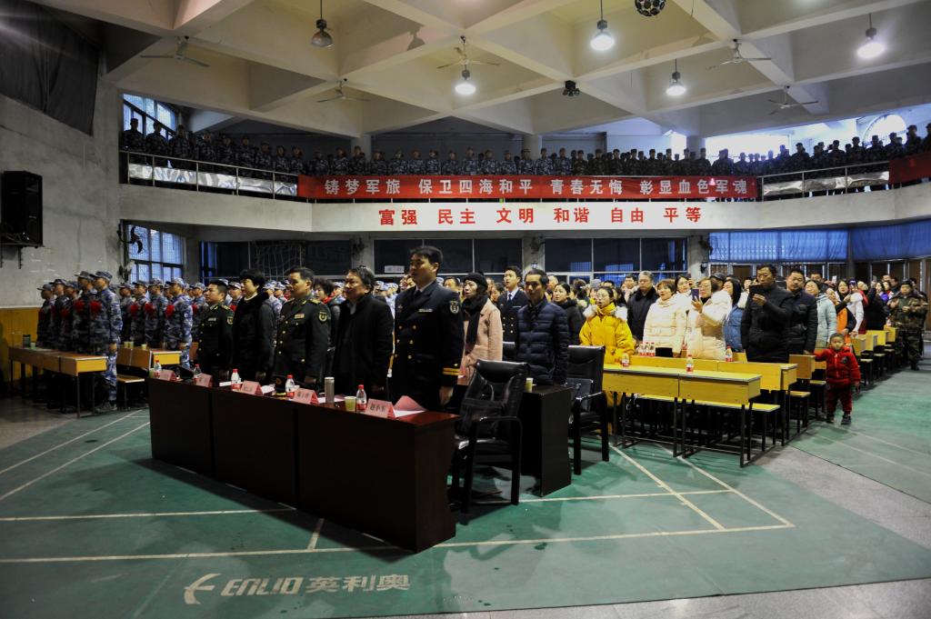 12月29日,学校在马沧湖校区隆重举行第五届定向培养士官生入伍欢送会,武汉警备区副司令员、武汉市人民政府征兵办公室主任刘志海大校、海军工程大学政治工作处赵小东干事、学校校长陈方晔、副校长谢彤出席欢送会,学校相关职能部门负责人、航海学院教师、家长代表及全体在校士官生共同为2016级士官生光荣入伍送上祝福。