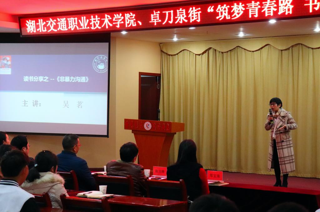 教师代表们分享了他们的读书体会和感悟。教务处张维老师分享了《行者无疆》,以旅者的角度为读者描述出西方文明所特有的美,也使读者对于行万里路,见万种美的生活状态愈发向往;新闻中心杨文婕老师通过对《老人与海》介绍,深刻的为大家描述了一位坚韧不拔、永不言弃的硬汉形象。最后,樊登读书会武昌分会副会长,湖北省图书馆、武汉图书馆、汤湖图书馆特邀讲师吴茗与大家分享了书目《非暴力沟通》。