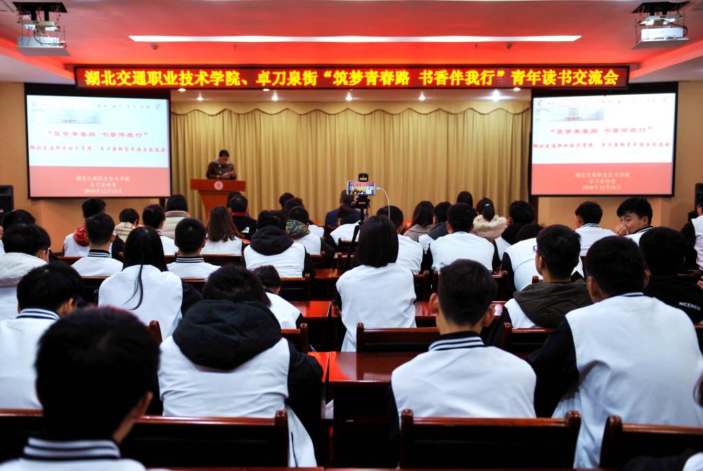 为响应省委省直机关工委的号召,着力培育青年“爱读书、读好书、善读书”的文化氛围,12月24日,我校联合卓刀泉街在培训楼三楼开展了以“筑梦青春路 书香伴我行”为主题的青年读书交流会。卓刀泉街党工委书记杨建忠、省委省直机关团工委副书记袁朝华、我校校长陈方晔、卓刀泉街人大工委副主任余曙红、虎泉社区社区书记郑宝珠出席了本次活动,二级学院分团委老师及百名学子参与了交流会,活动由校团委李阳主持。