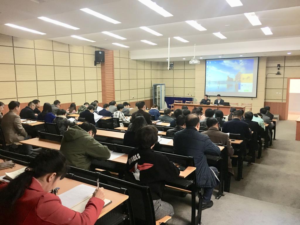 质量管理处熊文林处长传达了《关于编制、发布和报送高等职业教育质量年度报告(2019)的通知》(教职成司函〔2018〕142号)和省教育厅《关于报送高等职业教育质量年度报告(2019)的通知》(2018年11月8日)等文件精神,并对我校高等职业教育年度质量报告编制工作安排、具体内容及相应要求进行了详细说明。