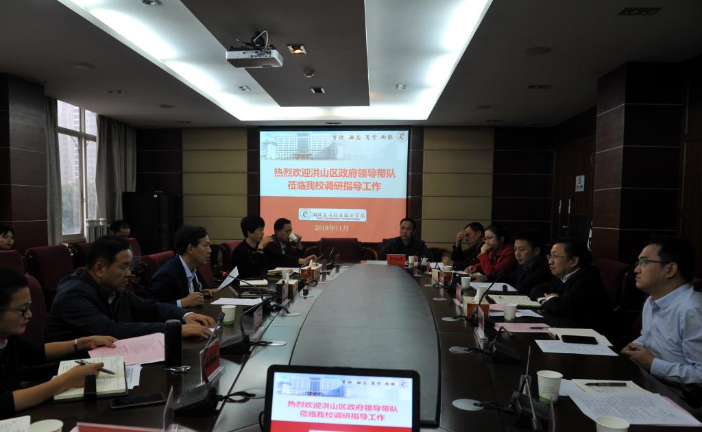 继10月31日来校调研后,11月5日,洪山区副区长杨海松再次率区政府办、卓刀泉街、区城乡统筹发展局、科经局、文体局、城管委、交通大队、供电公司等有关单位负责同志来我校考察调研,并围绕校园周边环境整治、交通疏导等问题现场办公,提出解决方案。校领导陈方晔、李全、谢彤及相关职能部门负责人参加座谈。