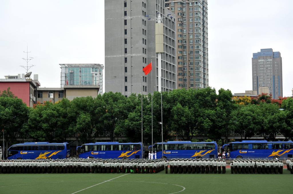闭营式后,在家校领导与承训部队首长和教官在学校大楼前合影留念。(摄影/张骊 杨文婕 张嘉铖 张亚振 计力 王译萍 朱伊凡 龚巧蓉)