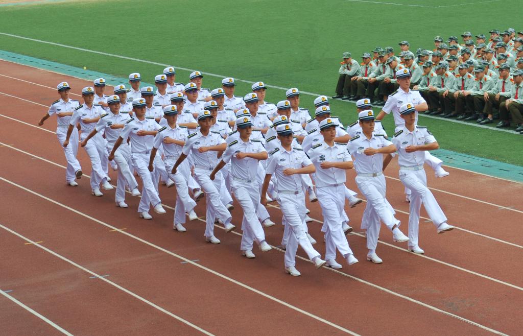 海军工程大学研究生院一大队二队军训教官熊曹丰收代表军训教官发言,全体军训教官进行了军训科目展示,飒爽的英姿、整齐的步伐、磅礴的气势尽显军人的风采,引来一阵阵掌声。在热烈的气氛中,海军工程大学研究生院一大队二队教导员董宁宣布军训正式开营。