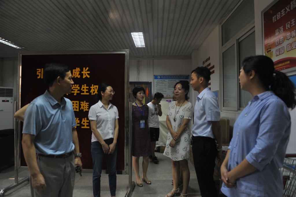 校领导一行首先走访了招生就业处、学工处、各二级学院。校领导们详细询问和了解了今年报考我校生源及录取进展情况、学生工作及就业情况等。每到一处,校领导们都就与一线工作人员亲切交谈,仔细询问在岗职工暑期的工作、生活、身体状况,对大家顶酷暑、战高温,高度的工作责任心和扎实认真的工作态度给予了高度评价,对大家的辛苦付出表示衷心感谢。同时,他嘱咐大家在做好工作的同时,注意防暑降温、保重身体,并向他们赠送了消暑物资和慰问金。