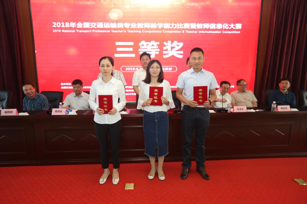 6月23日,2018年全国交通运输类专业教师教学能力比赛暨教师信息化大赛在呼伦贝尔职业技术学院圆满落幕。我校两名教师获得一等奖,三名教师获得二等奖,三名教师获得三等奖,学校获得最佳组织奖。