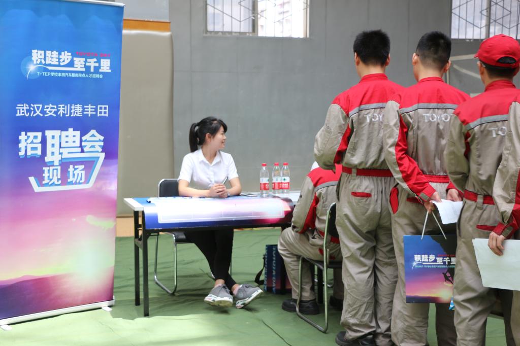 6月7日,“积跬步 至千里”2018年 T-TEP丰田汽车公司服务网点人才招聘会(TOYOTA-DAY)在学校隆重举行,来自全省的一汽丰田、广汽丰田、雷克萨斯16家丰田经销店参会,提供了包括一般维修、钣金、喷漆、服务顾问、销售在内的170个职位,我校120多名学生与企业当场签下就业意向协议。