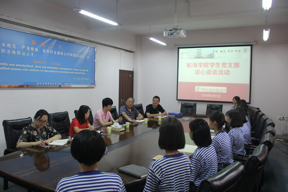 为进一步加强对基层党建工作的领导和指导,更好地推动党支部工作,提高基层党建工作水平,6月5日下午,副校长谢彤走进航海学院学生党支部基层党建联系点,与女士官生开展了一场亲切的谈心谈话活动。航海学院总支书记、学生党支部支委委员及10名女海军士官生参加座谈。