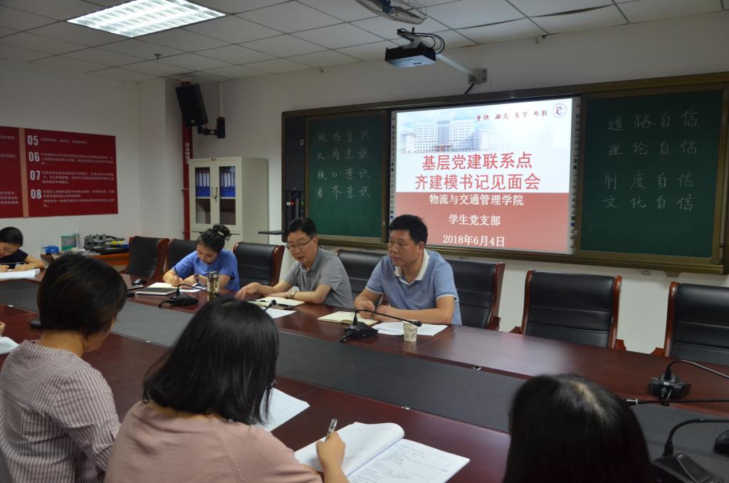 为贯彻落实基层党建联系点制度,进一步加强对党建工作的领导和指导,不断提高党建工作水平,确保2018年党建工作任务落实,6月4日下午,纪委书记齐建模参加物流与交通管理学院学生党支部基层党建联系点工作座谈会,该院总支书记、学生党支部全体成员及10余名重培对象、入党积极分子代表参会。