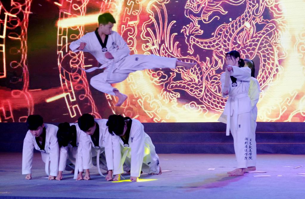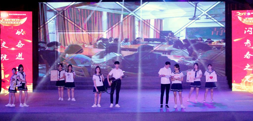 本届科技文化艺术节闭幕式融科技、文化、艺术于一体,各学院在文艺汇演中,通过视频短片、表演及科技成果展示等形式,回顾了一年来所取得的成果,展示了各学院办学特色,绽放了校园文化魅力。文艺汇演在武术社和锣鼓社热闹喜庆的《奋进之彩》中拉开帷幕,共呈现了12个节目,每个节目都亮点频出。公路与轨道学院《筑梦公轨跃青春》集歌舞为一体,展现了逐梦新时代决心与毅力;航海学院情景剧《海军,海军》充满看点与泪点,展现了我校士官生们赤诚于心、奉献于行的家国情怀;物流与交通学院《梦想之歌》演绎了“放飞梦想 享受成长”的物交文化,展现了“人人进步、人人出彩”教育理念;广播台和记者团联合呈现的朗诵《中国话》声美、文美、气势美,萃集了五千年华夏文明;舞蹈社古典舞《熏香》缥缈玲珑,仙气十足;建筑与艺术设计学院T台秀《魅力建院》展现了我校学子学在母校、情系母校、奉献社会的风采与魅力;交通信息学院情景剧《青春是用来奋斗的》彰显了我校学子热情洋溢、激扬青春、不停奋斗的交院风采;学工处舞蹈《战狼》再现“战狼”风骨,令人心潮澎湃、热血沸腾;汽车与航空学院舞蹈朗诵《锦绣汽航,载梦飞翔》将诗歌、舞蹈与具有冲击力的背景画面结合在一起,展现了大国工匠精益求精精神;吉他社歌曲《夜空中最亮的星》投射出的恬静意境与浪漫情怀,让人动容;合唱团与舞蹈社共同演绎的《迎风飘扬的旗》为本次文艺汇演画上了圆满的句号。