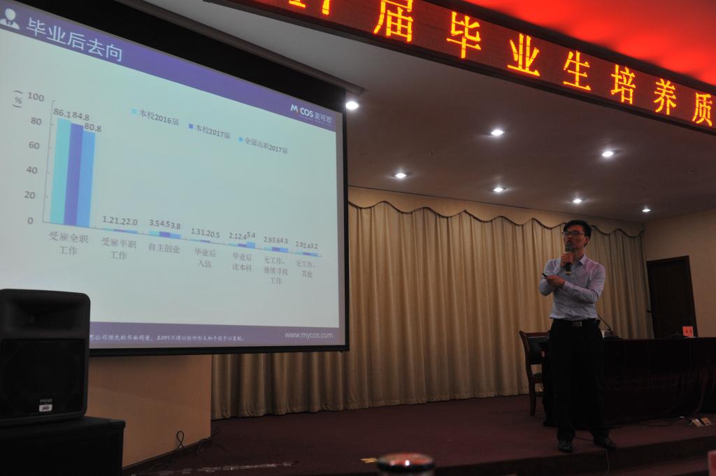 5月3日,麦可思公司纪红军教授应邀来校,对《yl6809永利官网2017届毕业生培养质量评价报告》作了深度解读,我校在家校领导、各部门负责人、教师代表和全体辅导员参加报告会。