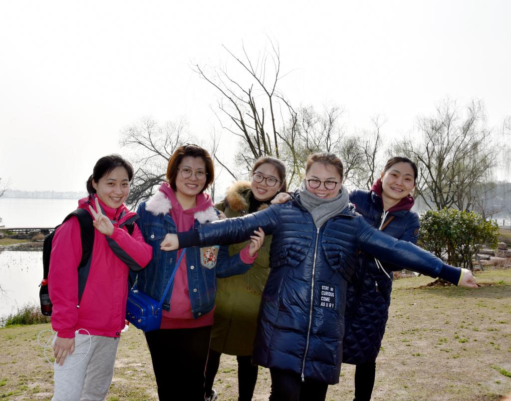 上午9时,来自学校11个分工会的100余名女职工乘坐大巴到达东湖绿道“楚风园”。集体合影后,分小组从“楚风园”大门广场出发,沿着东湖绿道步行,在“水杉光影”处折返,共计8公里。沿途风景秀丽,柳枝摇曳,水光潋滟,大家一路赏景,笑语连连。