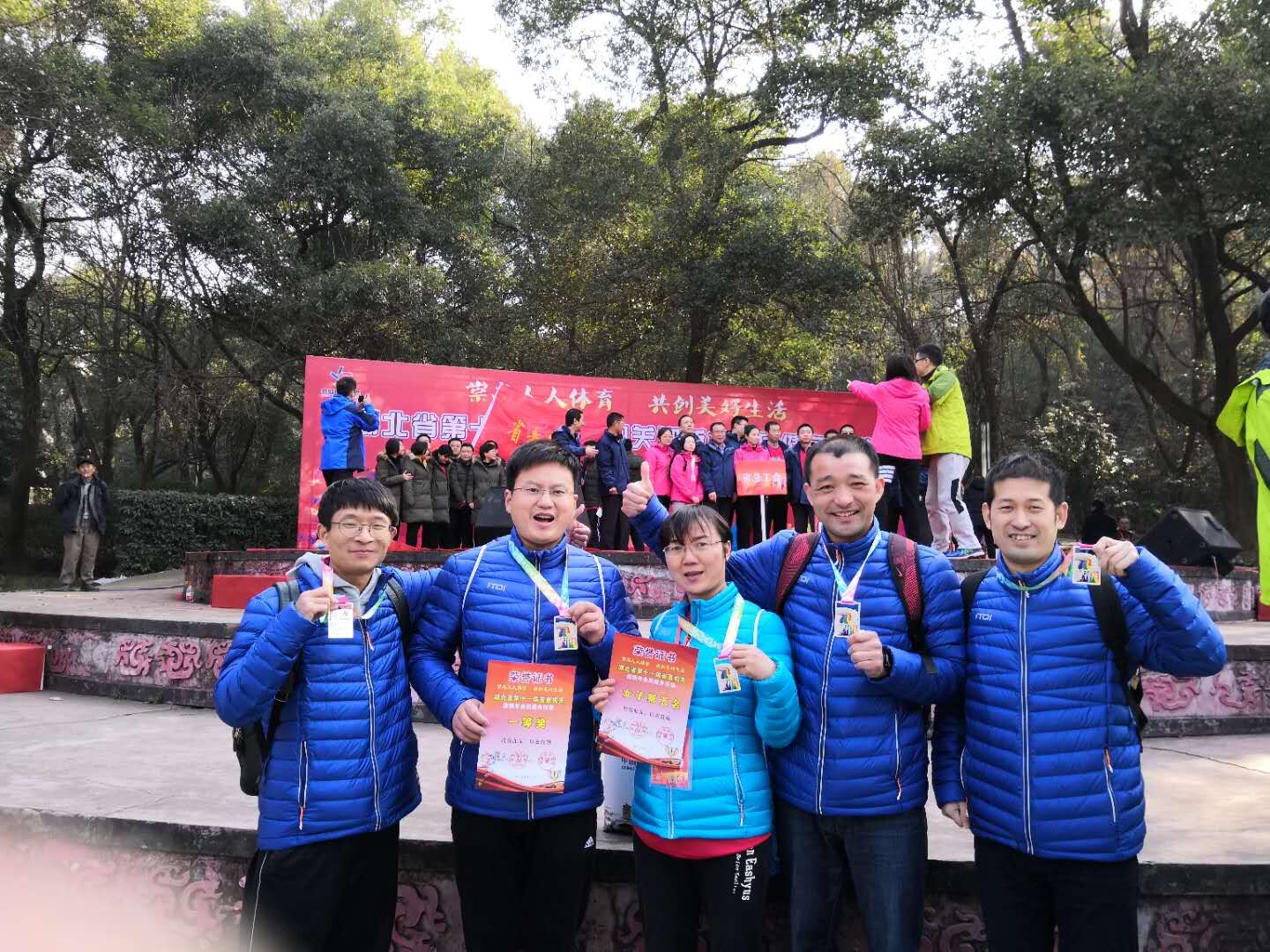 湖北省第十一届省直机关全民健身活动于12月26日在东湖磨山举行,我校由贺章波、高贺、许劲松、何鑫、唐军荣五名老师组成竞速组,从128个省直机关单位代表队中脱颖而出,获得团体一等奖。