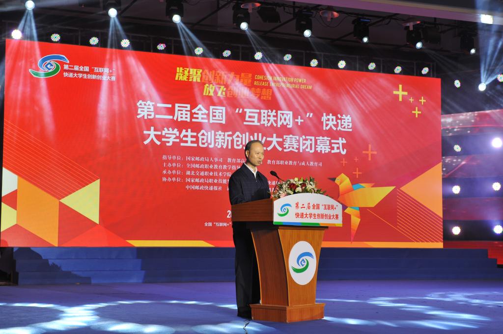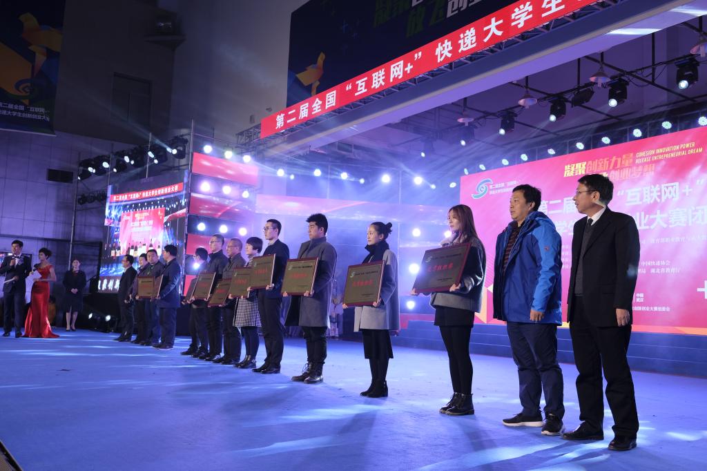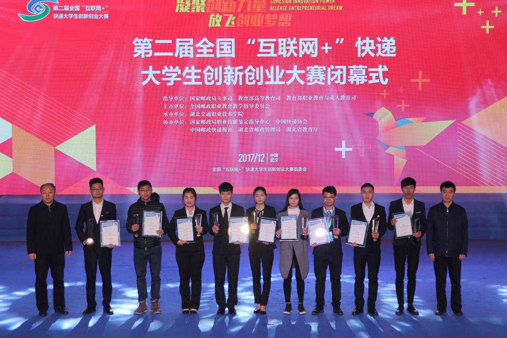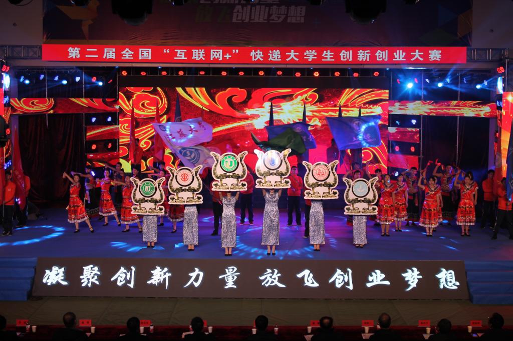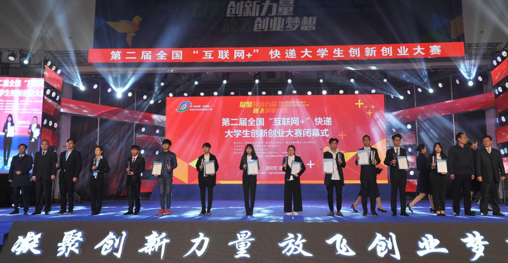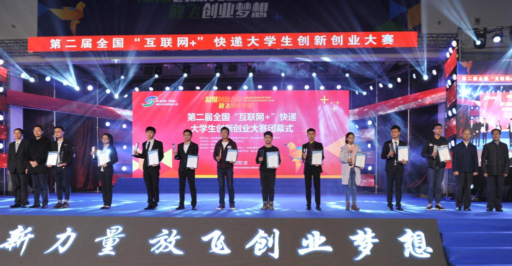 大众创业热潮涌动,万众创新星光灿烂。12月8日,在我校体育馆,由国家邮政局人事司、教育部高等教育司、职业教育与成人教育司指导,全国邮政职业教育教学指导委员会主办,我校承办的第二届全国“互联网+”快递大学生创新创业大赛全国总决赛圆满落幕。来自全国18所高校的30支参赛队经过现场答辩、专家评审等多个环节,最终决出10个优秀组织奖,9个金奖,21个银奖。国家邮政局、教育部职成司、省邮政管理局、省交通运输厅、省教育厅等单位领导出席闭幕式并为获奖者颁奖,大赛评审专家、各参赛高校代表、各新闻媒体代表、创投机构代表及我校师生近千人参加了大赛闭幕式。