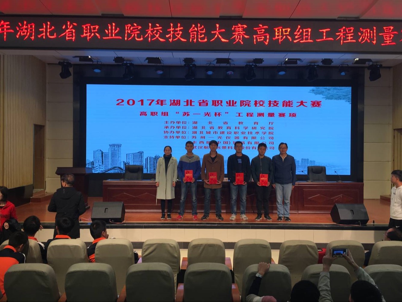 11月4日至5日,由湖北省教育厅主办、湖北省教育科学研究院承办的2017年湖北省职业院校技能大赛高职组“广联达杯”工程造价赛项、“苏一光杯”工程测量赛项在湖北城市建设职业技术学院举行,我校公路与轨道学院代表队同时获得两个赛项的团结二等奖。